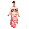 優しいクリーム色に、華やかな花文様。いわゆる、晴れ着としてのおめでたさ満載の振袖です。とても可愛らしさがあるので、どこか“イチゴの練乳がけ”な気分。甘酸っぱい、青春のコーディネートです。