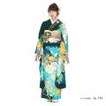 地色が濃いお振袖は、柄がより映えるというもの。爽やかなカラーのバラが、とても華麗でゴージャスです。グラデーションがあったり、輪郭だけのバラもあったりと、どこか神秘的な香りが漂います。きっと、バラの周りを飛び交う蝶のせいでもあるかも。透け感のある蝶は、レースのように繊細でどこか儚げです。