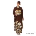 チョコレート色の中に香り豊かな花を咲かせる振袖、優雅で特別な印象で胸おどります。