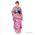 ピンクとパープルをモチーフにしたビビットな振袖、アイドル的な印象を可愛らしく表現しています。シルク調のファブリックで仕上げたバラの花は「愛と美」の象徴で女性には人気の花ですね。香り豊かで見る者を魅了するエレガントなバラは振袖姿を一段とステキにしてくれます。