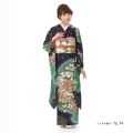 ネイビーブルーの濃い藍色に流れるように描かれている常盤色(ときわいろ)が美しい振袖、まるで夜空の中の天の川の様です。