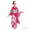 チェリーピンクの地色に豪華絢爛に描かれた花々が美しい振袖、ロマネスク調に描かれたモチーフがきらびやかな趣をアシストしています。美しい花々を代表するバラの花は「愛と美」の象徴として世界中の女性たちから愛されている花ですね。バラの花は日本でもゆかりのある花でバラの自生地として世界的に有名です。古くは「うばら」や「うまら」と言われて「万葉集」にも詠われていました。しとやかで上品なバラの花、ピンクのバラは「美しい少女」や「愛の誓い」などの花言葉も持っています。