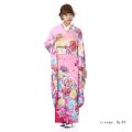 可愛いピンクの地色にカラフルな薔薇!漫画の1ページを着物に仕立てたようなキュートな世界!