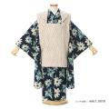 着物地の紺色は 被布の濃く暗い青色は「深藍(ふかあい)」と呼ばれる伝統色。威厳を感じさせる色合いが質実剛健を尊ぶ中世の武士たちに非常に好まれました。さらに藍色は「褐色(かついろ)」と呼ばれ、「かつ」の響きが「勝つ」と同じことから縁起のいい色とされてきました。お花の青緑色は、「碧色(へきしょく)」。碧は「碧玉(へきぎょく)」を指しており、古代より曲玉や首飾りなどの装飾品として用いられてきた結晶をあらわした高級感のある色味です。そして文様は、男の子きものでは珍しい花柄。レトロなタッチで可愛らしく描かれます。可愛いデザインを着れるのは3歳のお祝い着の特権。愛くるしい着姿で大切な日をお迎えください。