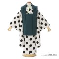レトロで可愛らしいデザインですが、使用される色味が全体的に落ち着いているので上品で大人っぽさも感じます。被布の暗い緑色は、「深緑(ふかみどり)」。常緑樹の葉などの濃い緑色の形容に使われる深みのある上品なカラーです。描かれるのは着物の柄のなかでも、特に人気の水玉柄。季節関係なく洋服のような感覚で軽やかに着用できる文様です。ポップな印象というよりは、レトロでどこか懐かしさを感じるアンティークさがあります。大正ロマンのようなお洒落なデザインは、古典すぎずに着用しやすいので着る人を選びません。大切なお祝いだからこそ、人とは被らないお洒落でセンスのいいものを好まれる方におすすめの一着です。