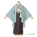 大切なお祝い事だからこそ、お洒落で特別な装いを着せてあげたいもの。こちらの男の子着物は、古典すぎずに、モダンでスタイリッシュに仕上がっています。羽織の美しい水色は、「薄水色(うすみずいろ)」という色味で、文字通り水色を薄くしたような、淡い青緑色のことです。そこにモダンカリグラフィーのように、お洒落に文字が描かれています。袴のシックな茶色は「煤竹色(すすたけいろ)」。囲炉裏の煙に燻されて、すすけて古色を帯びた竹の色のような暗い茶褐色のことです。江戸時代に通好みの色として愛用され、流行した人気の伝統色です。着物のドット柄は、古典的な着物に抵抗ある方にも、コーディネートがしやすく、自分らしく気取らずに楽しんでいただけることでしょう。シンプルですが、センスの良さが光ります。シックな色使いで粋な着こなしが完成しました。
