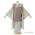 柔らかく大人っぽい雰囲気のこちらのお祝い着。被布の淡いブラウンは「胡桃染(くるみぞめ)」と呼ばれる、灰がかった黄褐色のことです。山野に自生する胡桃の樹皮や果皮の煎汁と灰汁で染めましたとされている、自然の美しさを感じる素朴な優しい色味です。着物に描かれる文様は、特定されるものではなく花々を抽象的に描かれているので、季節を問わずに着用できます。小花柄はどなたでも抵抗なく可愛く着ていただけるので、古典すぎずに洋服のようなお洒落なものを好まれる方に非常におすすめです。胸のコサージュも華やかさを演出してくれます。全体的に大人っぽい色味なので可愛らしすぎずに、上品で落ち着いた着こなしが出来ます。大切な人生の節目です。大人びた着姿を見て、こみ上げてくるものがあるのではないでしょうか。忘れられない一日にしてくれることでしょう。