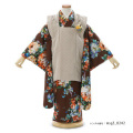 シックで大人っぽい雰囲気ですが、豪華な花々の文様がよく映える華やかなお祝い着の紹介です。着物地の綺麗な茶色は「栗皮茶(くりかわちゃ)」と呼ばれ、栗の実の皮のような黒みがかった赤褐色です。深みのあるカラーで上品な印象を与えます。文様は古典的というよりも、西洋の絵画のような繊細で柔らかいタッチで描かれます。大輪の花が特徴の「牡丹」は、「百花の王」とされ、幸福や富貴の象徴とされています。また不老不死、長寿という意味もあります。昔から美しい女性を象徴する花で、豪華で華やかな印象を与えます。美しい「薔薇」は、愛と美の象徴です。可憐な花々が描かれ、エレガンスで女性らしさを引き立ててくれます。可愛さと上品さが合わさった、特別な日におすすめの装いです。